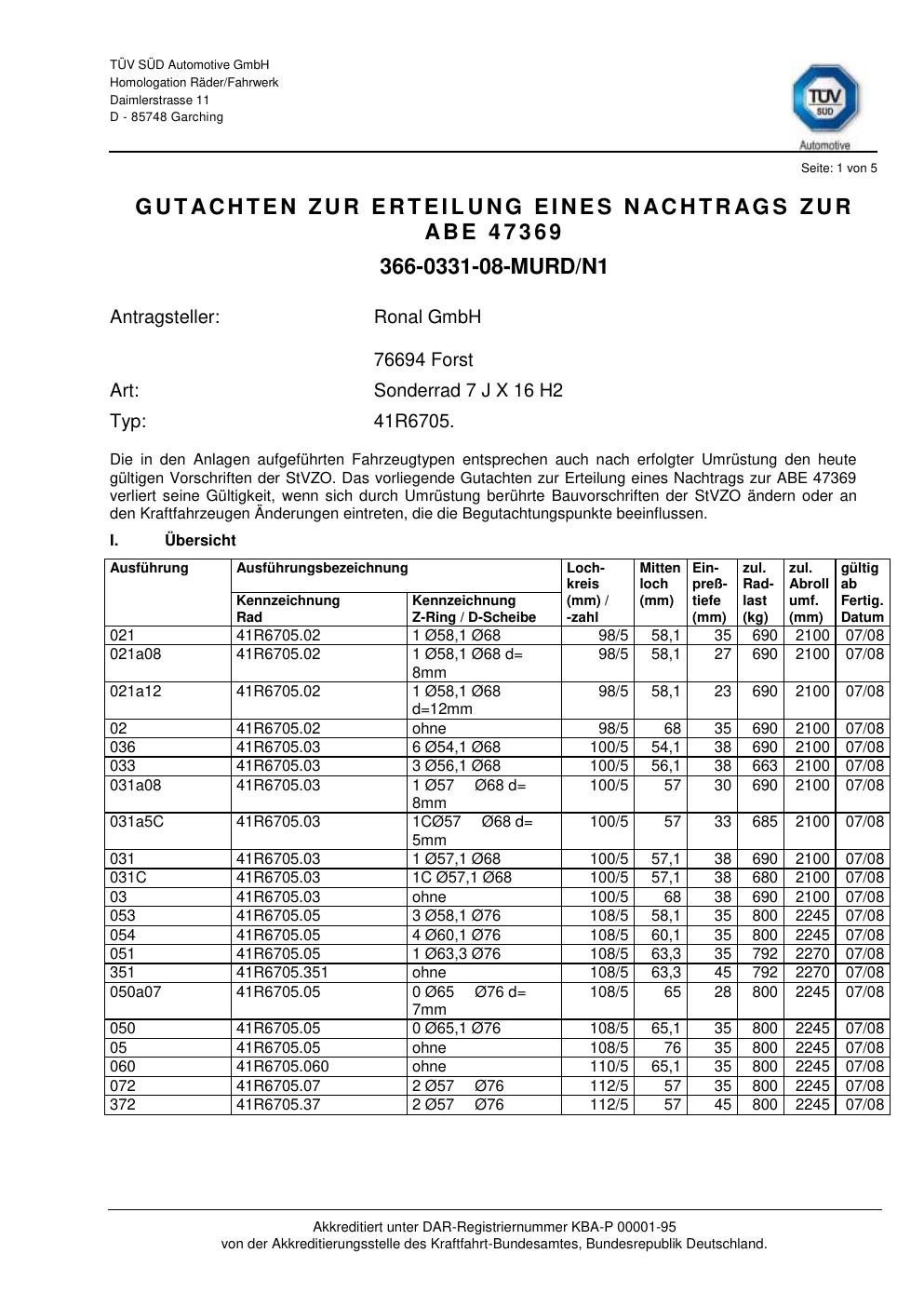 Felgengutachten / abe für Alufelgen ATS 41R6705 (7Jx16 ET 0, Mittenloch 0 mm) mit KBA 47369 (Zertifikatsnummer 47369). Hier kostenlos als PDF herunterladen. Der Download-Link ist 24 Stunden gültig und kann bis zu zwei Mal verwendet werden.