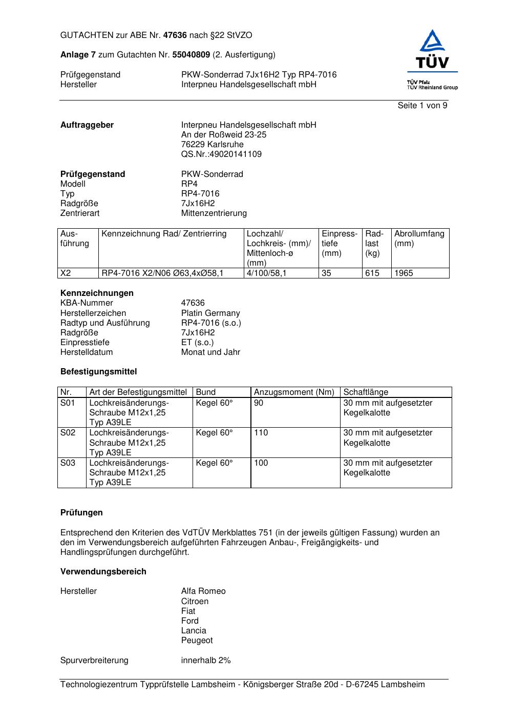 • Stimmt die KBA-Nummer auf der Felge mit diesem Dokument überein?