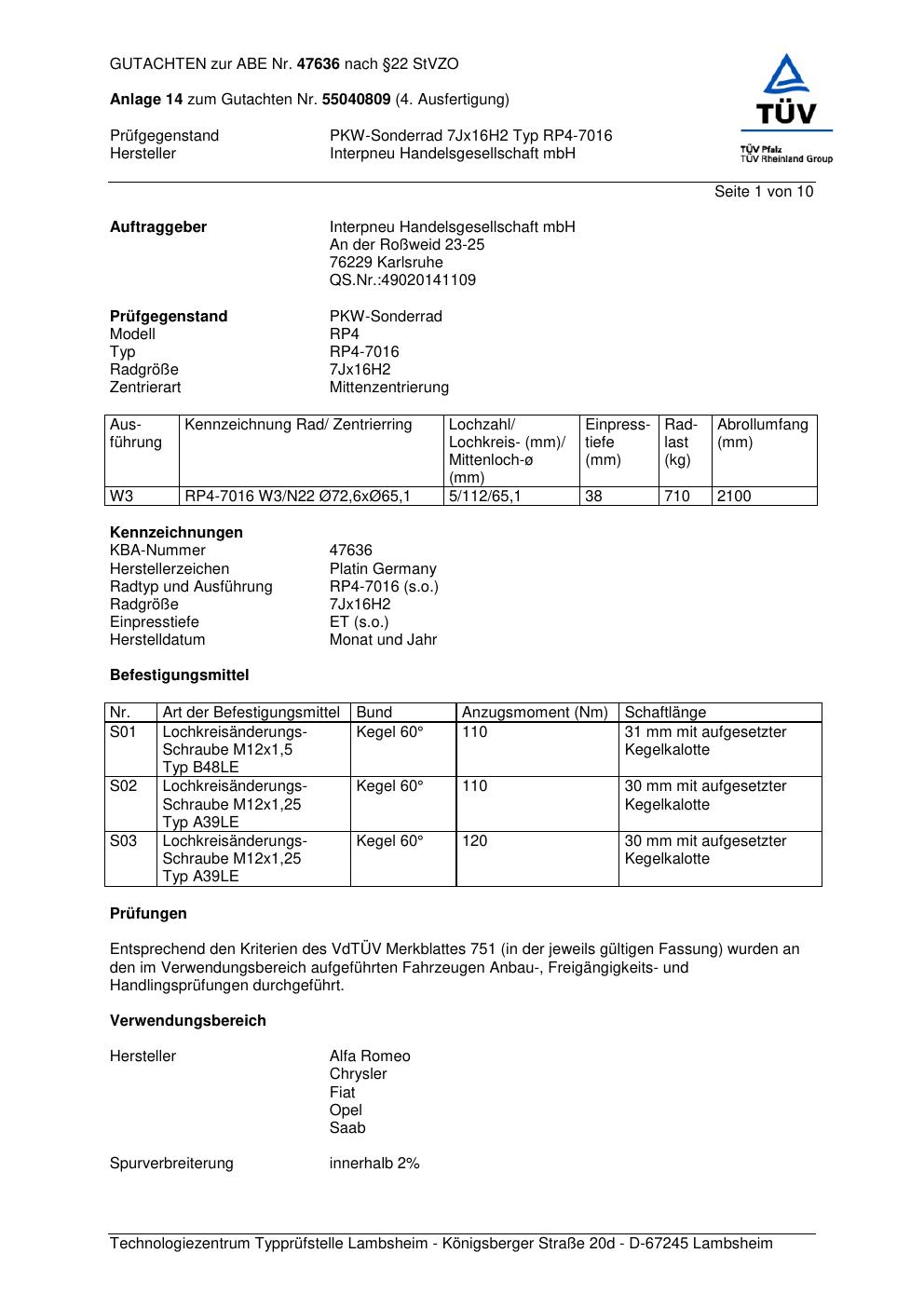 Dieses abe gehört zur Felge Platin RP4-7016 in 7Jx16 ET0 mit KBA 47636. Die Seite ist dafür gedacht, dass du schnell prüfen kannst, ob KBA, Design und Größe zu deiner Felge passen und danach direkt das richtige PDF lädst.