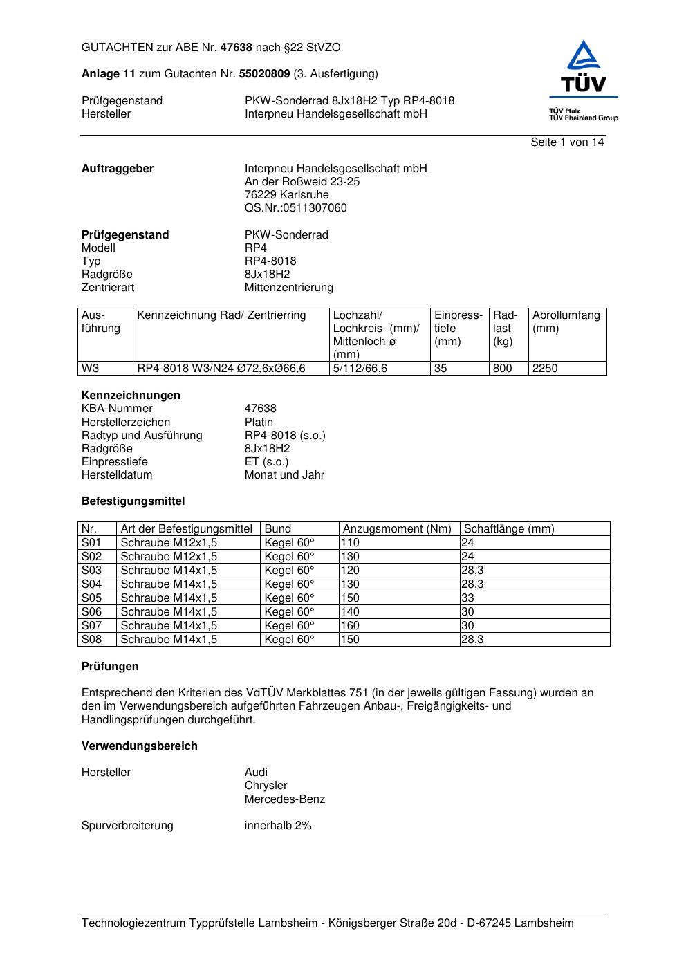 • Stimmt die KBA-Nummer auf der Felge mit diesem Dokument überein?