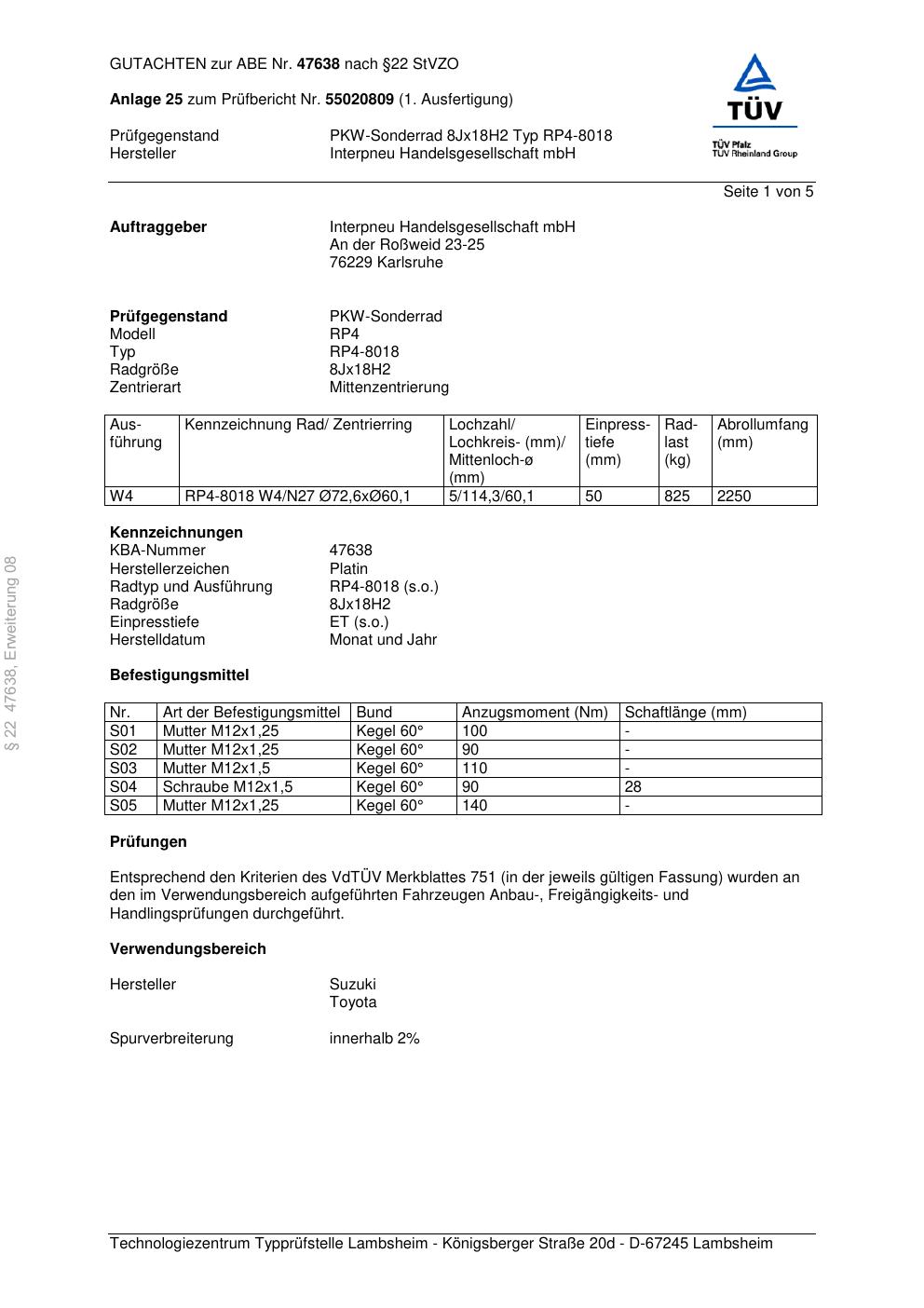 Dieses abe gehört zur Felge Platin RP4-8018 in 8Jx18 ET0 mit KBA 47638. Die Seite ist dafür gedacht, dass du schnell prüfen kannst, ob KBA, Design und Größe zu deiner Felge passen und danach direkt das richtige PDF lädst.