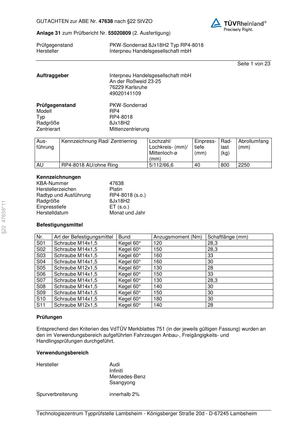 • Stimmt die KBA-Nummer auf der Felge mit diesem Dokument überein?