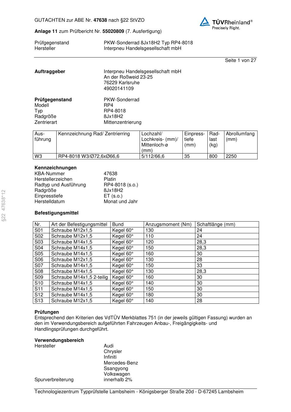 • Stimmt die KBA-Nummer auf der Felge mit diesem Dokument überein?