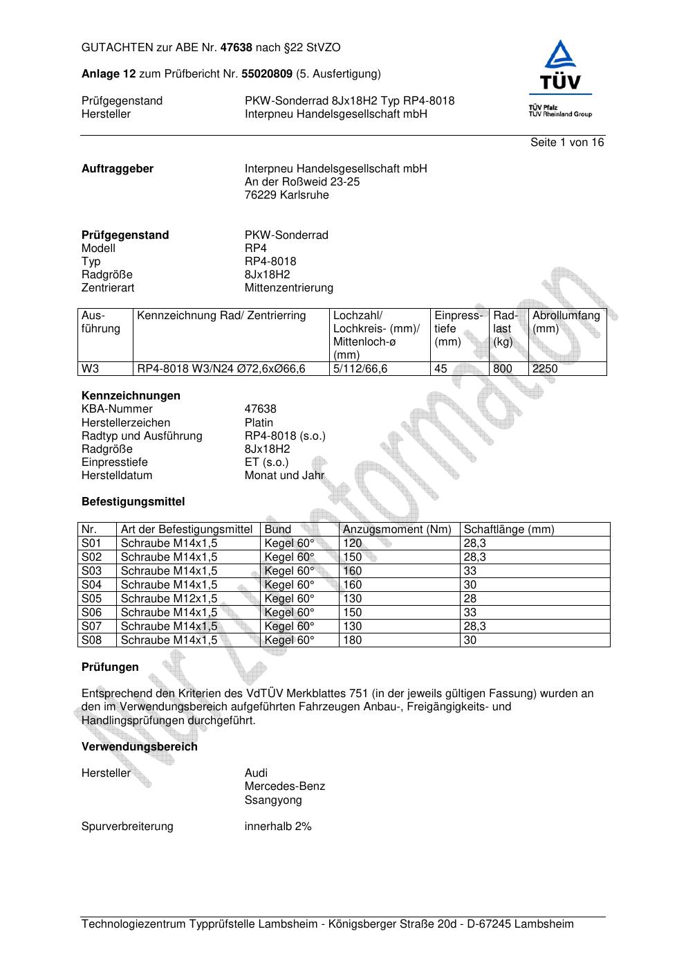 • Stimmt die KBA-Nummer auf der Felge mit diesem Dokument überein?