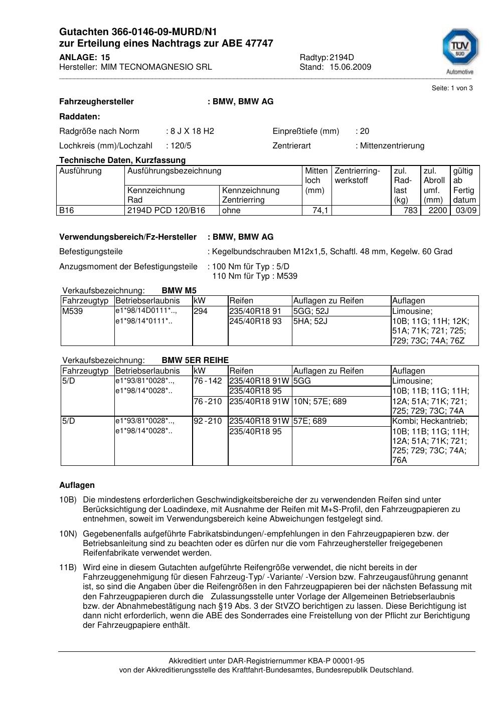 Felgengutachten / abe für Alufelgen ATS 2194D (8Jx18 ET 0, Mittenloch 0 mm) mit KBA 47747 (Zertifikatsnummer 47747). Hier kostenlos als PDF herunterladen. Der Download-Link ist 24 Stunden gültig und kann bis zu zwei Mal verwendet werden.