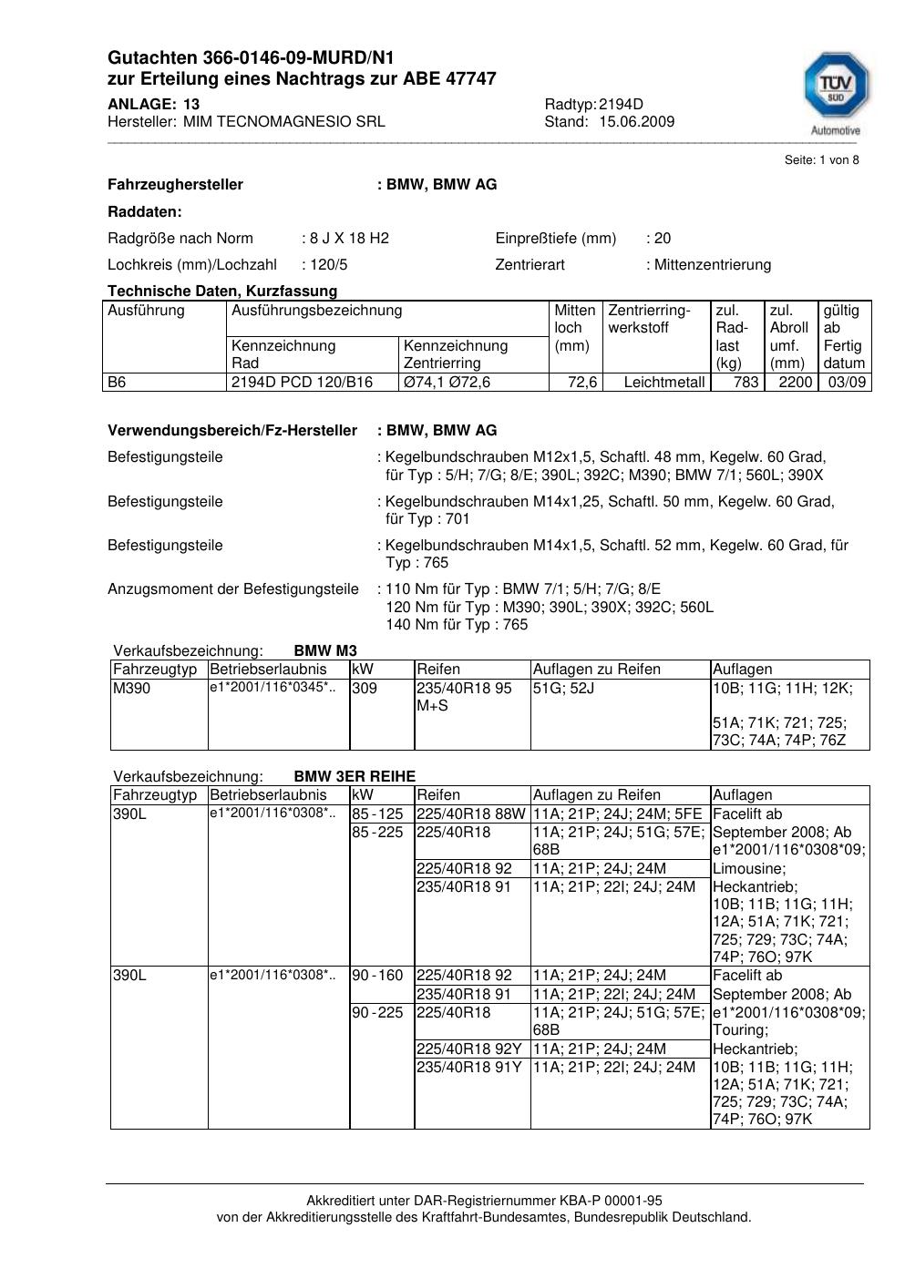 Felgengutachten / abe für Alufelgen ATS 2194D (8Jx18 ET 0, Mittenloch 0 mm) mit KBA 47747 (Zertifikatsnummer 47747). Hier kostenlos als PDF herunterladen. Der Download-Link ist 24 Stunden gültig und kann bis zu zwei Mal verwendet werden.