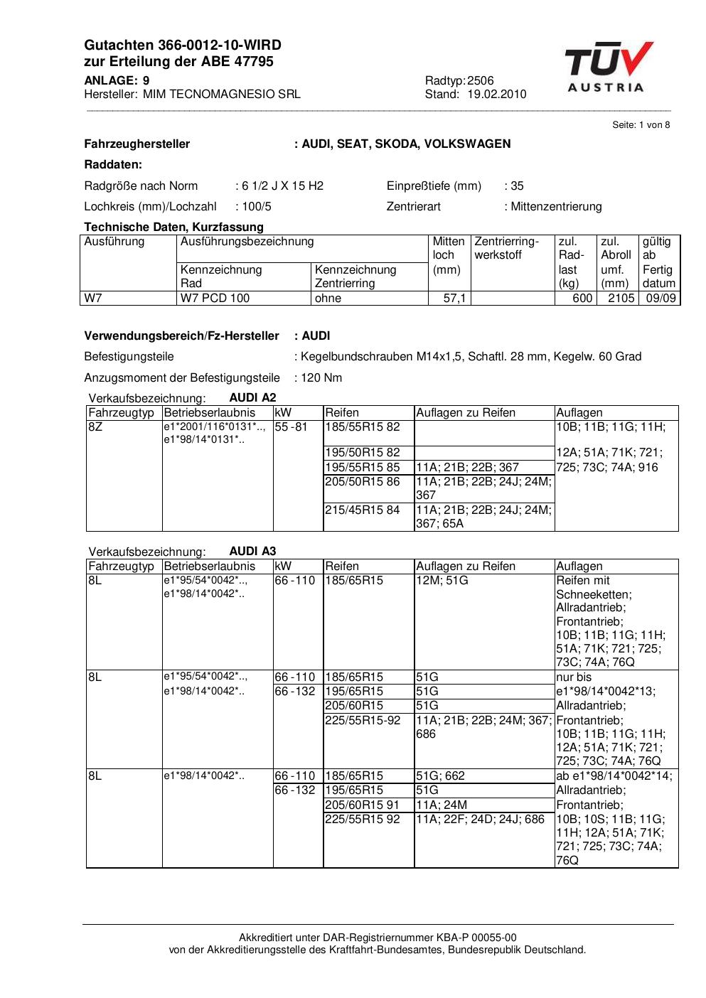 Felgengutachten / abe für Alufelgen ATS 2506 (2Jx15 ET 0, Mittenloch 0 mm) mit KBA 47795 (Zertifikatsnummer 47795). Hier kostenlos als PDF herunterladen. Der Download-Link ist 24 Stunden gültig und kann bis zu zwei Mal verwendet werden.