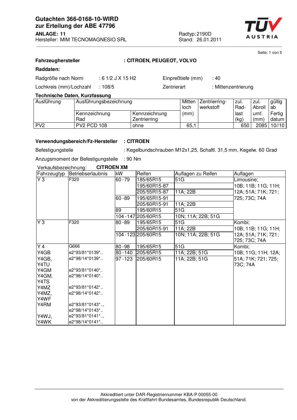 Dieses abe führt 3 Fahrzeugvarianten von 3 Fahrzeugherstellern als zulässig auf. Abgedeckt werden insbesondere Fahrzeuge von CITROEN, PEUGEOT, VOLVO. Prüfe in der folgenden Liste, ob dein konkretes Fahrzeugmodell und – soweit angegeben – der passende Typ-Code (HSN/TSN-Variante) dabei ist. Der Typ-Code steht im Fahrzeugschein unter den Ziffern 2.1 und 2.2.