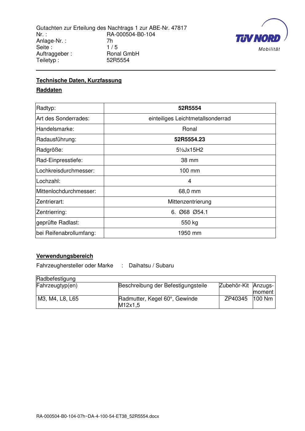 Dieses Gutachten (abe) bezieht sich auf die Alufelge ATS 52R5554 in der Ausführung ET 0, Mittenloch 0 mm (KBA 47817). Im PDF findest du typischerweise zulässige Reifengrößen, Auflagen/Anbauhinweise und – je nach Dokument – Hinweise zur Eintragung.