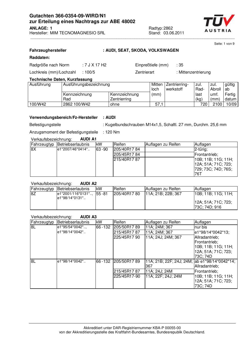- Stimmt die KBA-Nummer auf der Felge mit diesem Dokument überein?
