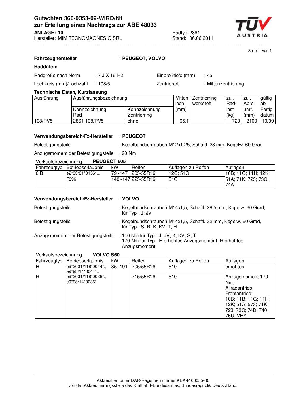 Dieses abe führt 2 Fahrzeugvarianten von 2 Fahrzeugherstellern als zulässig auf. Abgedeckt werden insbesondere Fahrzeuge von PEUGEOT, VOLVO. Prüfe in der folgenden Liste, ob dein konkretes Fahrzeugmodell und – soweit angegeben – der passende Typ-Code (HSN/TSN-Variante) dabei ist. Der Typ-Code steht im Fahrzeugschein unter den Ziffern 2.1 und 2.2.