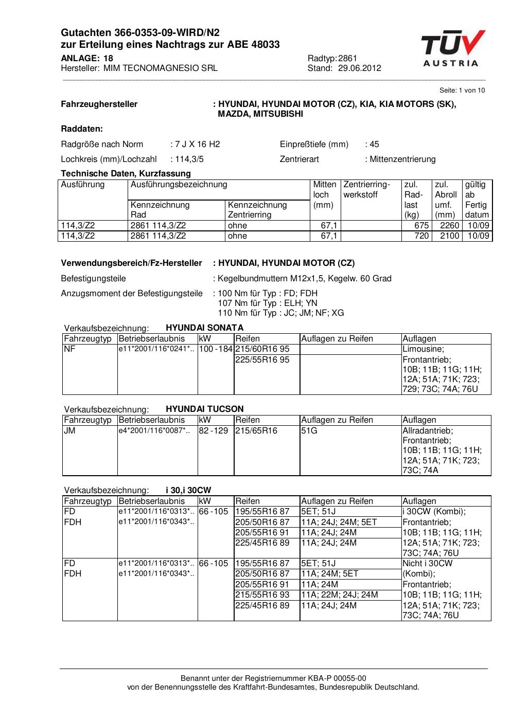 Dieses abe führt 5 Fahrzeugvarianten von 5 Fahrzeugherstellern als zulässig auf. Abgedeckt werden insbesondere Fahrzeuge von HYUNDAI, KIA, MAZDA, MG, MITSUBISHI. Prüfe in der folgenden Liste, ob dein konkretes Fahrzeugmodell und – soweit angegeben – der passende Typ-Code (HSN/TSN-Variante) dabei ist. Der Typ-Code steht im Fahrzeugschein unter den Ziffern 2.1 und 2.2.