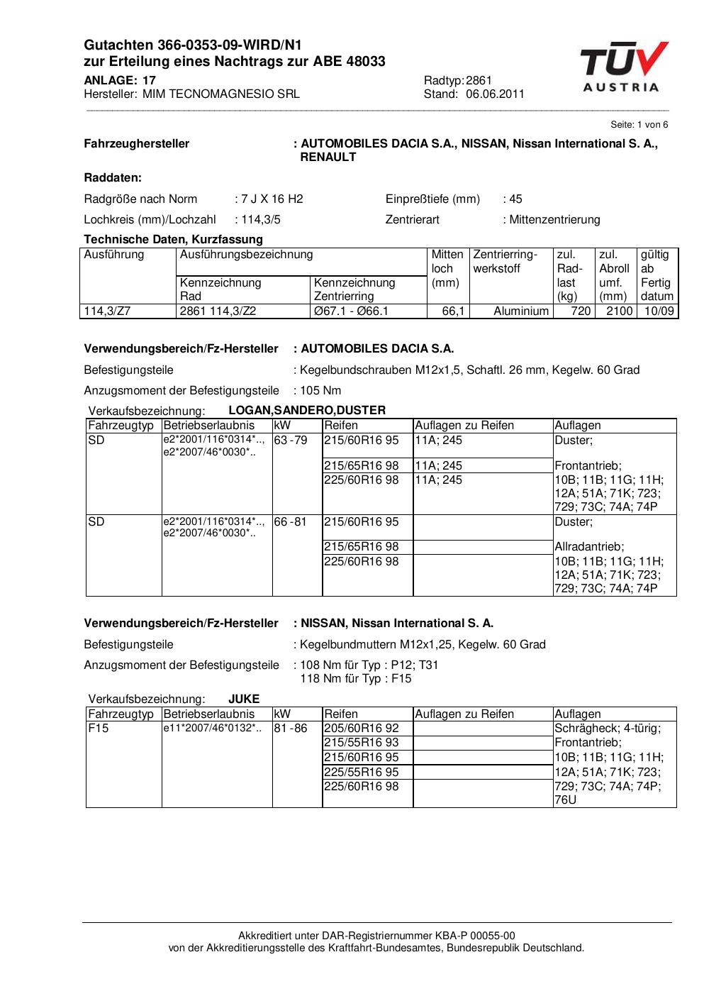 Felgengutachten / abe für Alufelgen ATS 2861 (7Jx16 ET 0, Mittenloch 0 mm) mit KBA 48033 (Zertifikatsnummer 48033). Hier kostenlos als PDF herunterladen. Der Download-Link ist 24 Stunden gültig und kann bis zu zwei Mal verwendet werden.