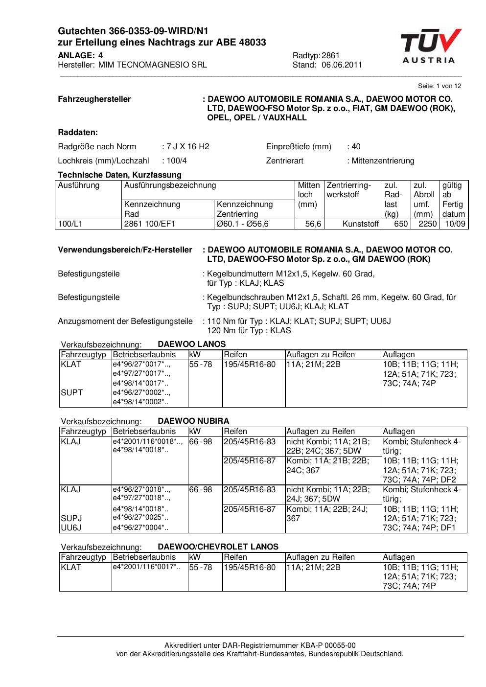 Dieses abe führt 5 Fahrzeugvarianten von 5 Fahrzeugherstellern als zulässig auf. Abgedeckt werden insbesondere Fahrzeuge von CHEVROLET, DAEWOO, FIAT, OPEL, VAUXHALL. Prüfe in der folgenden Liste, ob dein konkretes Fahrzeugmodell und – soweit angegeben – der passende Typ-Code (HSN/TSN-Variante) dabei ist. Der Typ-Code steht im Fahrzeugschein unter den Ziffern 2.1 und 2.2.