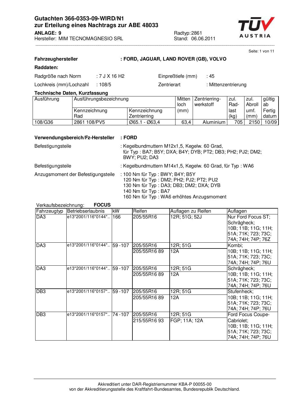 Dieses Gutachten (abe) bezieht sich auf die Alufelge ATS 2861 in der Ausführung 7Jx16 ET 0, Mittenloch 0 mm (KBA 48033). Im PDF findest du typischerweise zulässige Reifengrößen, Auflagen/Anbauhinweise und – je nach Dokument – Hinweise zur Eintragung.