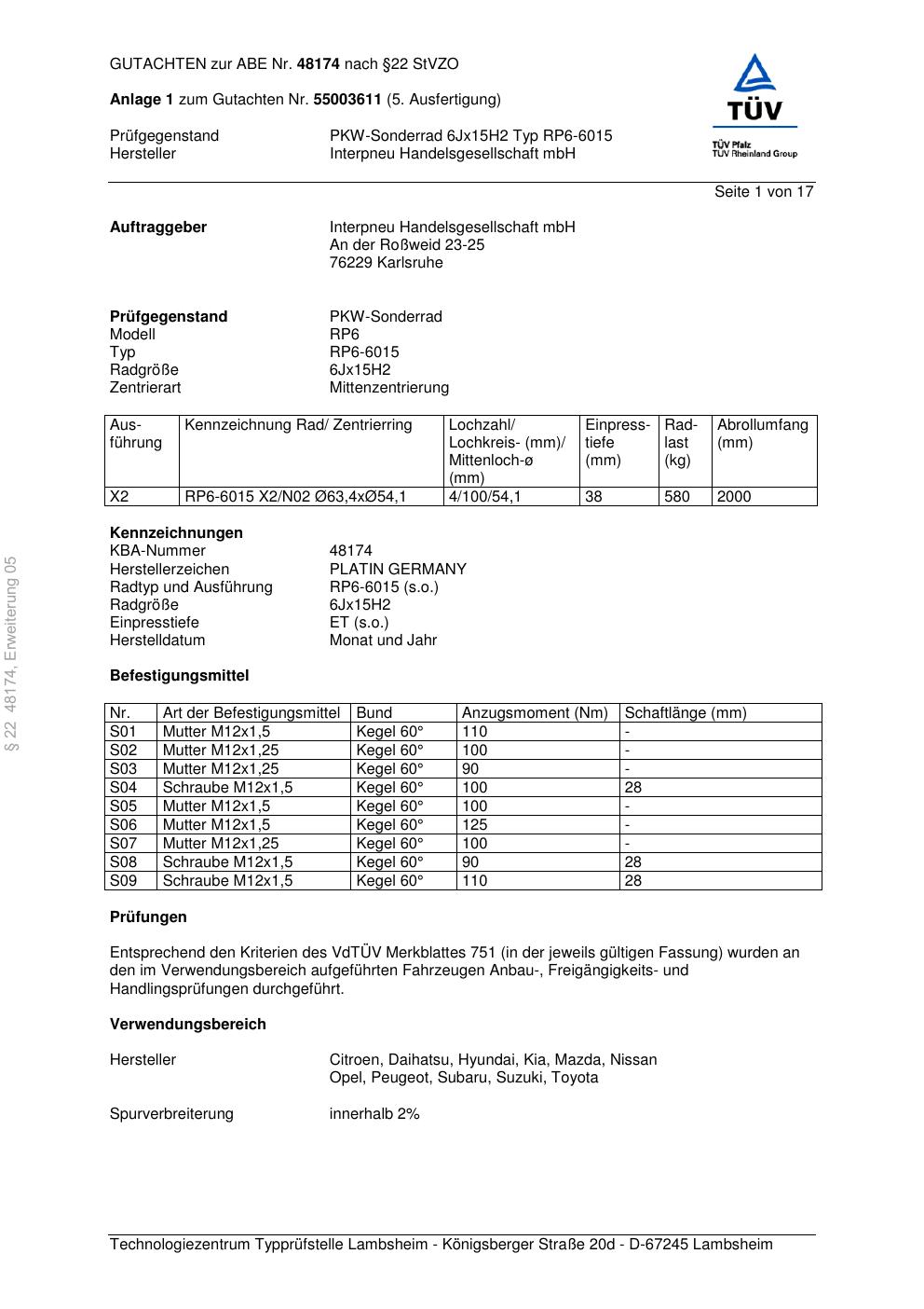 • Stimmt die KBA-Nummer auf der Felge mit diesem Dokument überein?