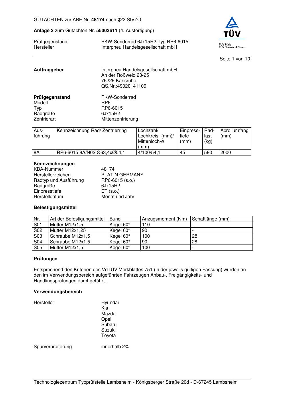 • Stimmt die KBA-Nummer auf der Felge mit diesem Dokument überein?