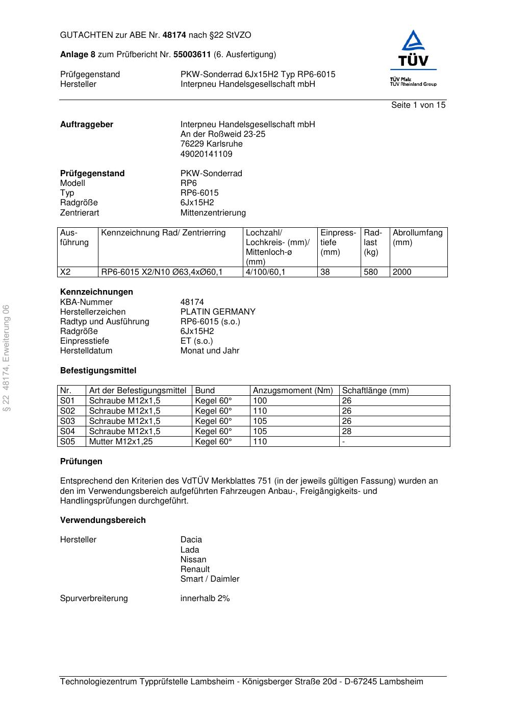 Dieses abe gehört zur Felge Platin RP6-6015 in 6Jx15 ET0 mit KBA 48174. Die Seite ist dafür gedacht, dass du schnell prüfen kannst, ob KBA, Design und Größe zu deiner Felge passen und danach direkt das richtige PDF lädst.