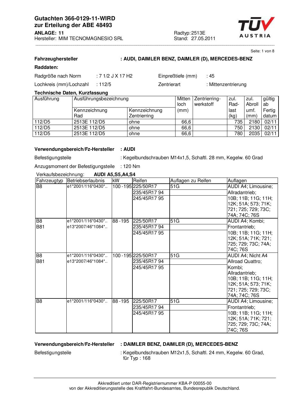 Abgedeckt werden insbesondere Fahrzeuge von AUDI, DAIMLER, MERCEDES-BENZ.