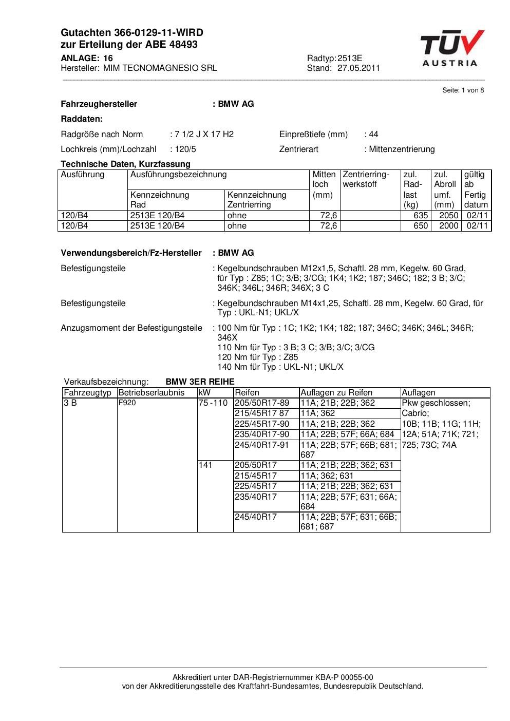 Kraftfahrt-Bundesamt (KBA) erwirkt hat. Sie erlaubt die Verwendung der Felge an