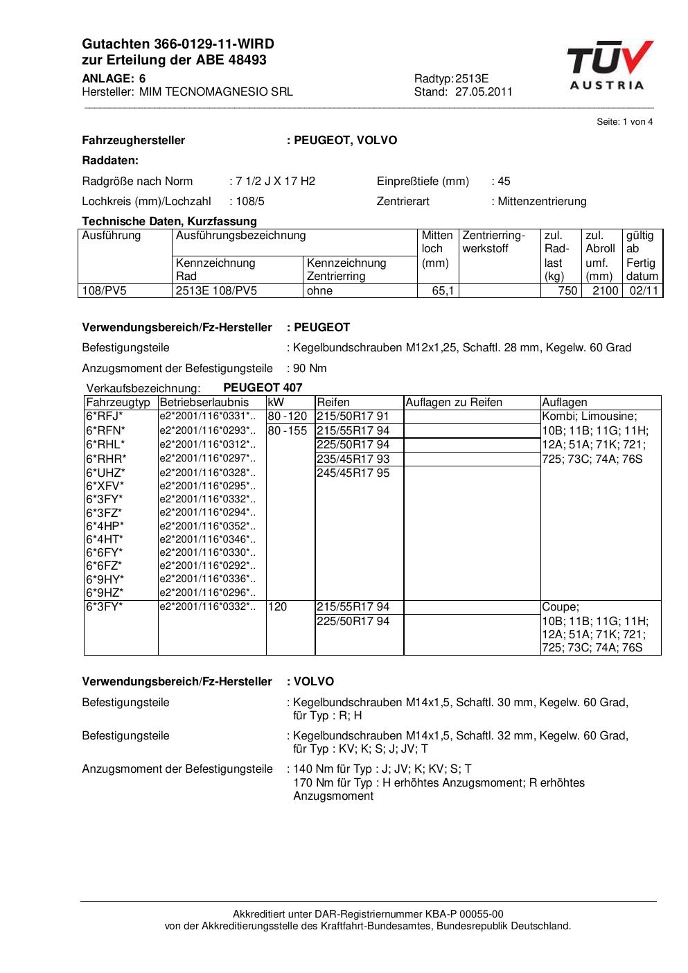 Kraftfahrt-Bundesamt (KBA) erwirkt hat. Sie erlaubt die Verwendung der Felge an