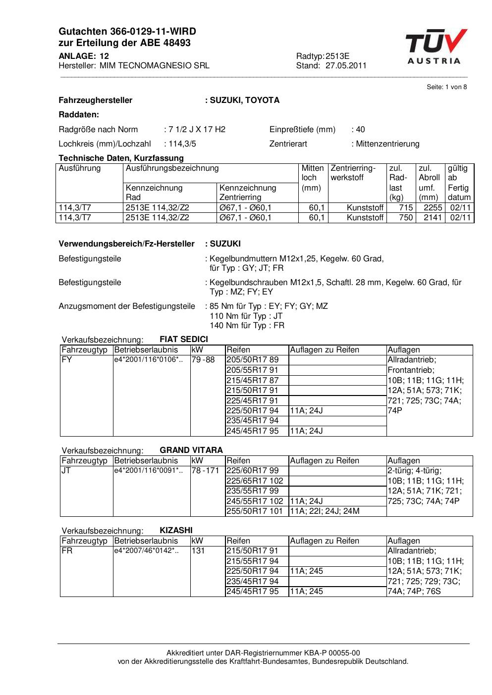 Kraftfahrt-Bundesamt (KBA) erwirkt hat. Sie erlaubt die Verwendung der Felge an