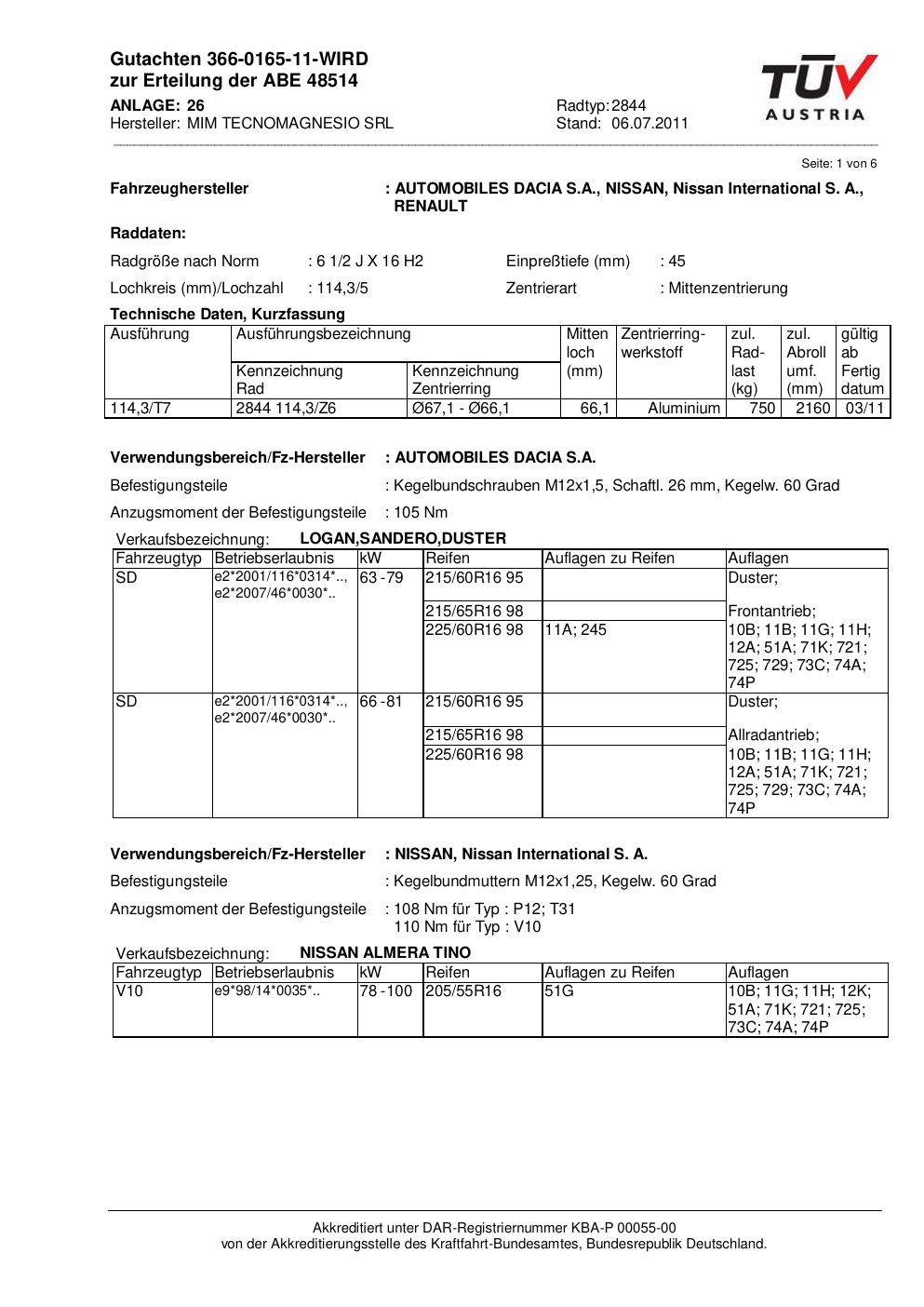 Felgengutachten / abe für Alufelgen ATS 2844 (2Jx16 ET 0, Mittenloch 0 mm) mit KBA 48514 (Zertifikatsnummer 48514). Hier kostenlos als PDF herunterladen. Der Download-Link ist 24 Stunden gültig und kann bis zu zwei Mal verwendet werden.
