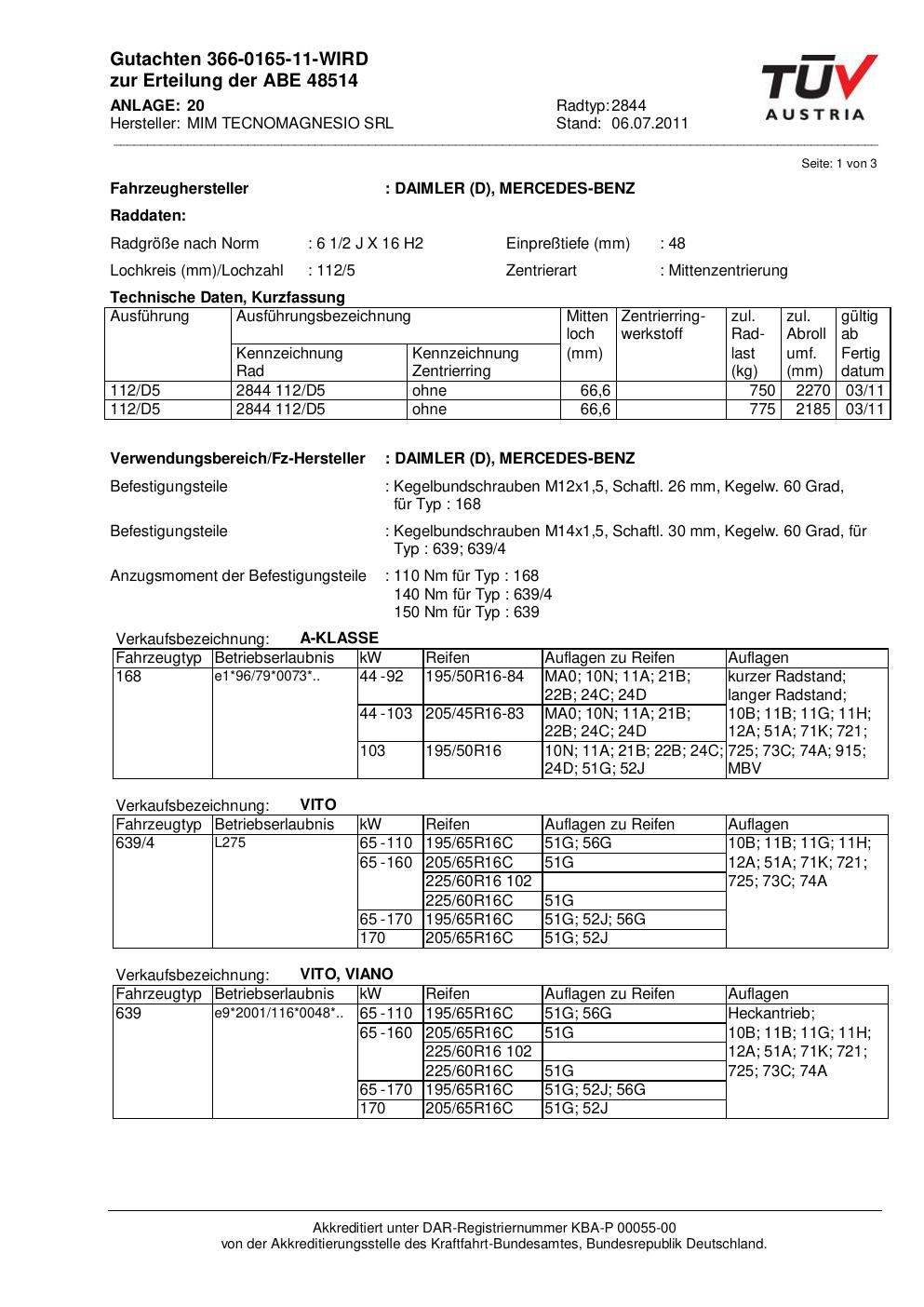 Dieses abe führt 2 Fahrzeugvarianten von 2 Fahrzeugherstellern als zulässig auf. Abgedeckt werden insbesondere Fahrzeuge von DAIMLER, MERCEDES-BENZ. Prüfe in der folgenden Liste, ob dein konkretes Fahrzeugmodell und – soweit angegeben – der passende Typ-Code (HSN/TSN-Variante) dabei ist. Der Typ-Code steht im Fahrzeugschein unter den Ziffern 2.1 und 2.2.