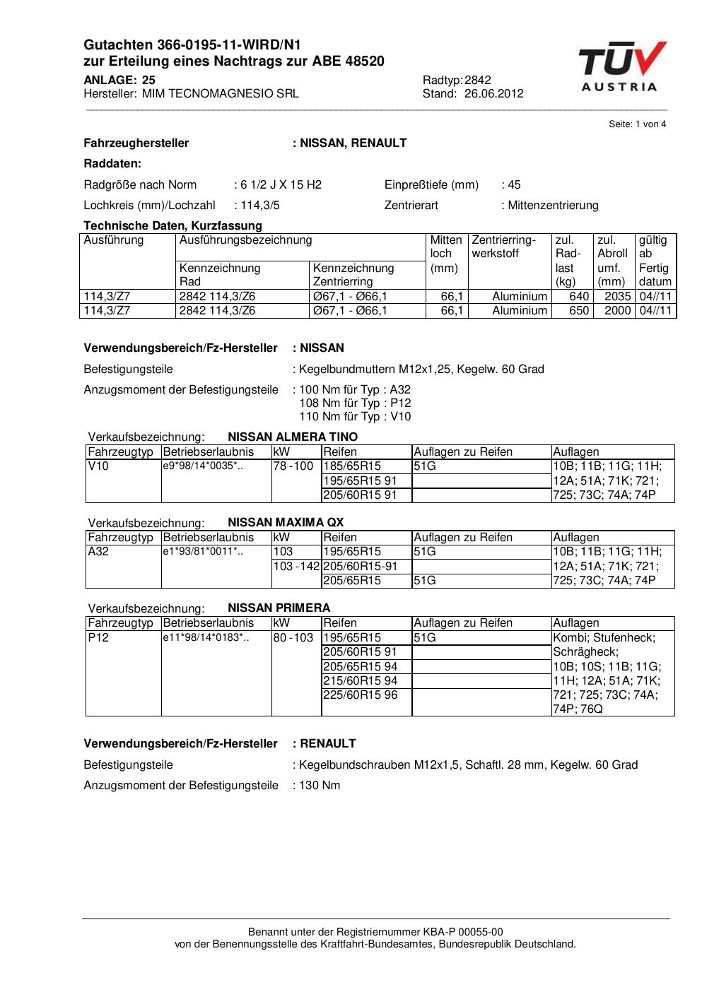 Dieses Gutachten (abe) bezieht sich auf die Alufelge ATS 2842 in der Ausführung 2Jx15 ET 0, Mittenloch 0 mm (KBA 48520). Im PDF findest du typischerweise zulässige Reifengrößen, Auflagen/Anbauhinweise und – je nach Dokument – Hinweise zur Eintragung.