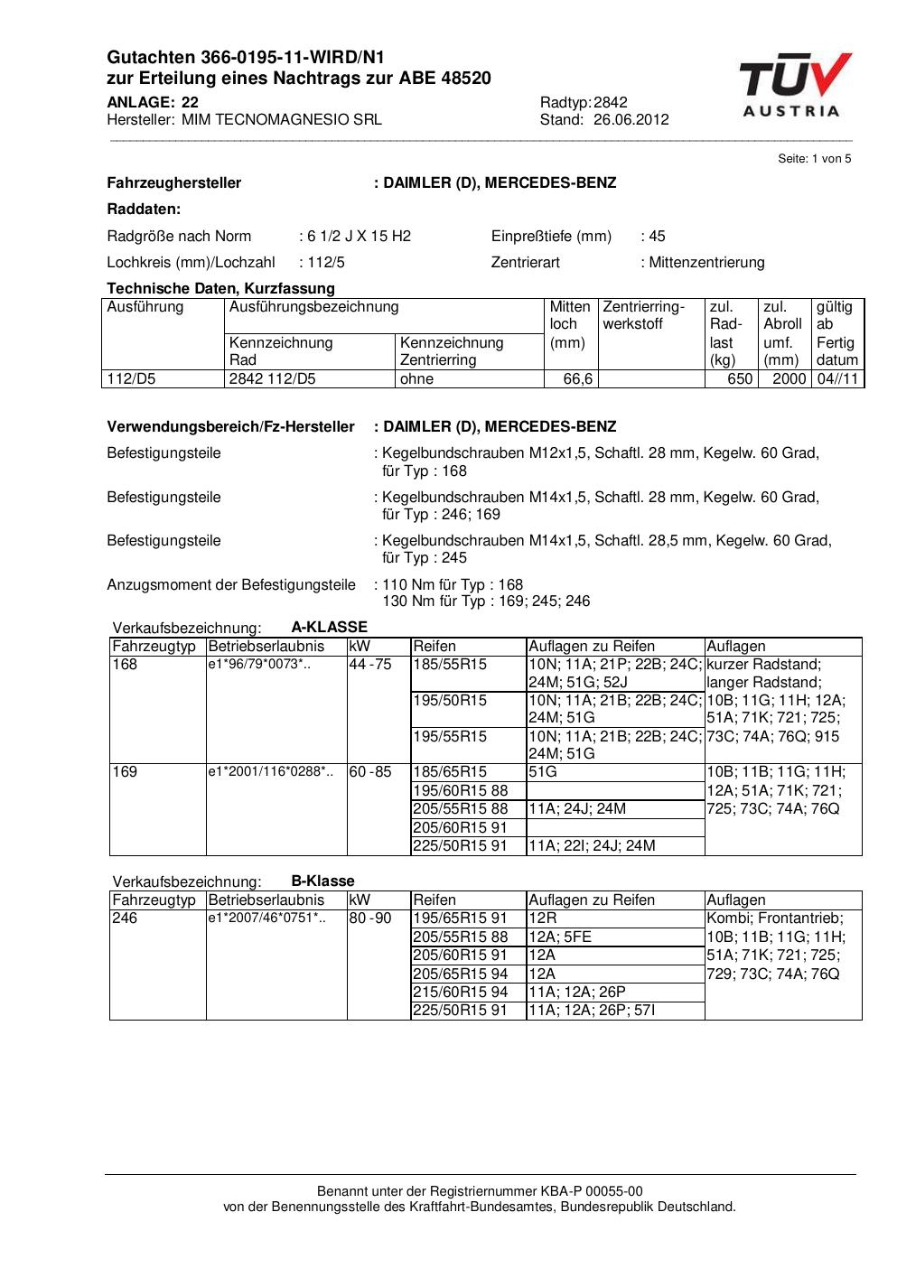 • Stimmt die KBA-Nummer auf der Felge mit diesem Dokument überein?