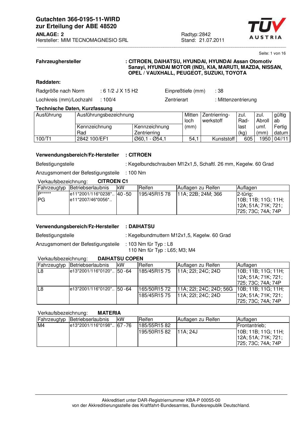Die vollständige und rechtsverbindliche Fahrzeugliste mit allen Auflagen und Einschränkungen steht im PDF-Dokument. Nicht jede Fahrzeug-Kombination erlaubt alle Reifengrößen oder Tieferlegungen – die Details entscheiden bei der Abnahme.