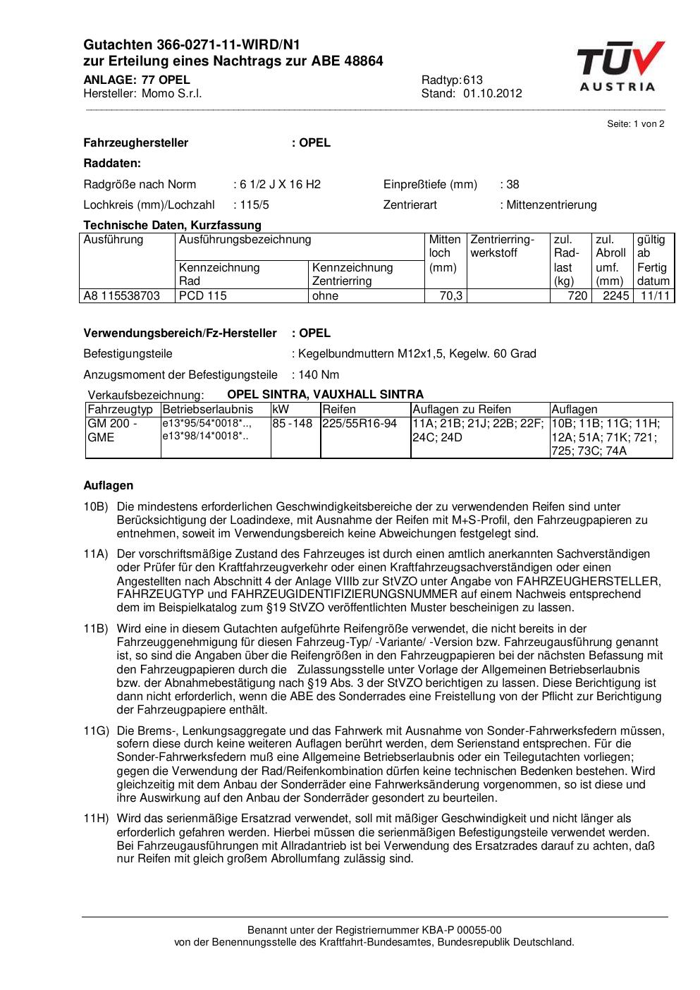 Dieses abe gehört zur Felge Momo 613 in 2Jx16 ET0 mit KBA 48864. Die Seite ist dafür gedacht, dass du schnell prüfen kannst, ob KBA, Design und Größe zu deiner Felge passen und danach direkt das richtige PDF lädst.