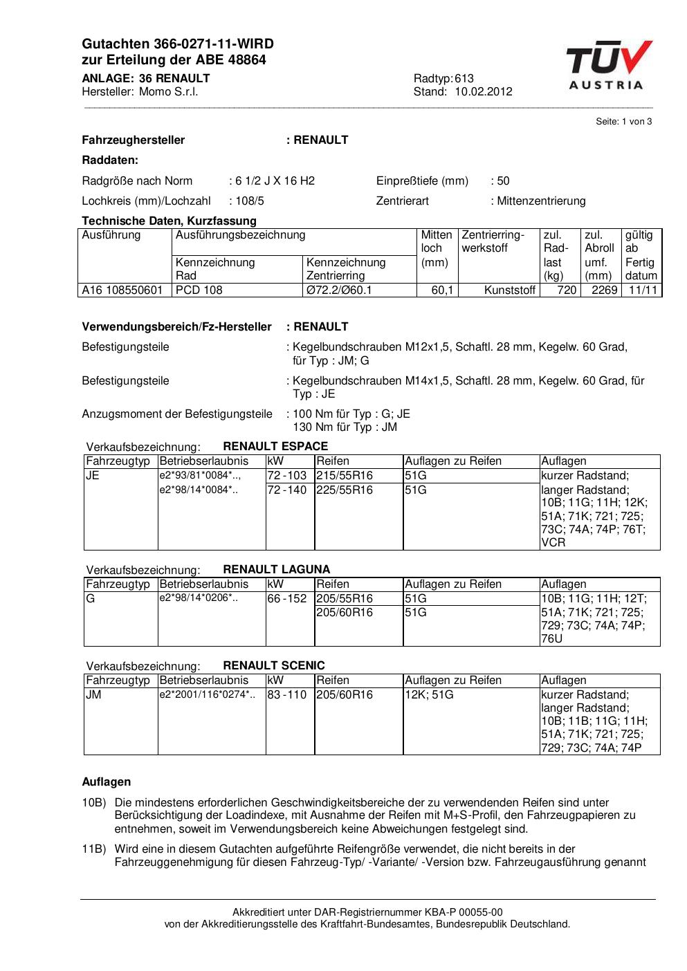 Dieses abe gehört zur Felge Momo 613 in 2Jx16 ET0 mit KBA 48864. Die Seite ist dafür gedacht, dass du schnell prüfen kannst, ob KBA, Design und Größe zu deiner Felge passen und danach direkt das richtige PDF lädst.