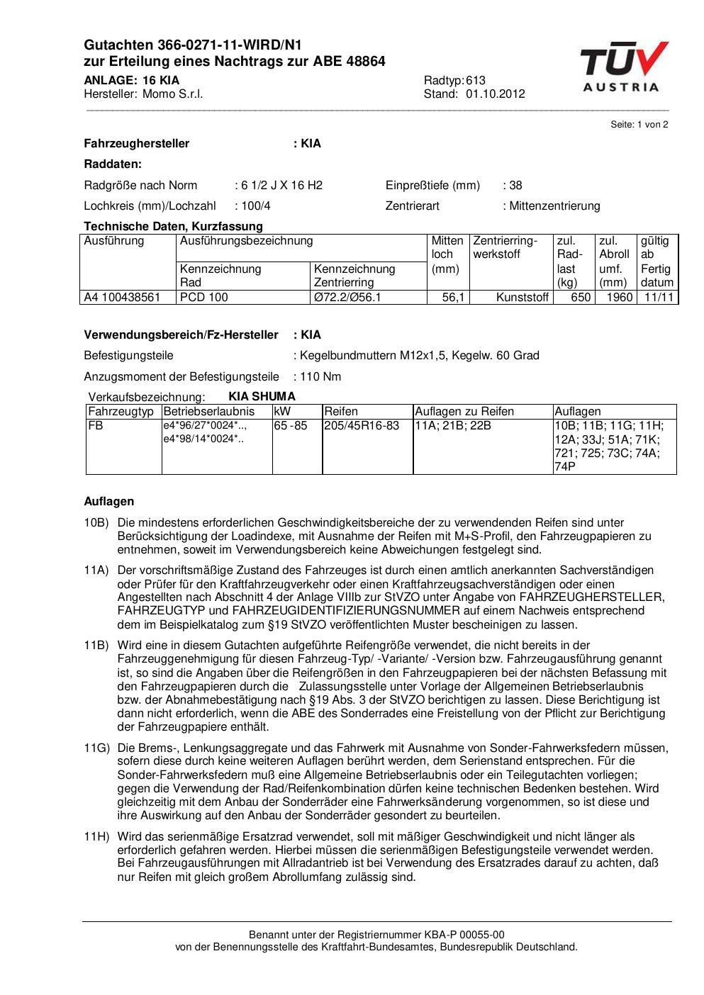 • Stimmt die KBA-Nummer auf der Felge mit diesem Dokument überein?
