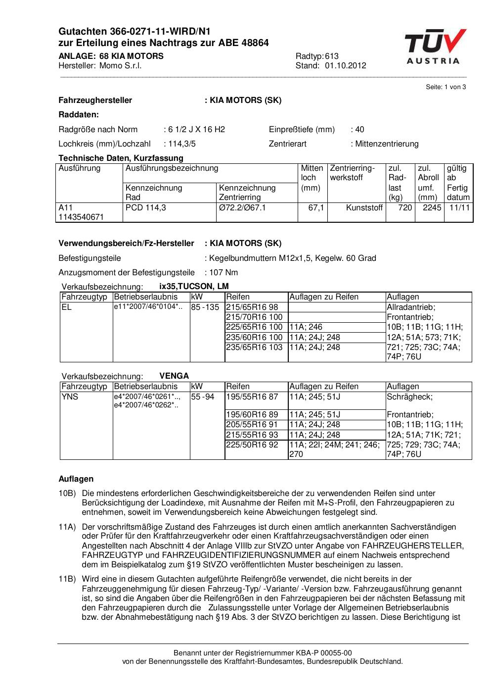 • Stimmt die KBA-Nummer auf der Felge mit diesem Dokument überein?