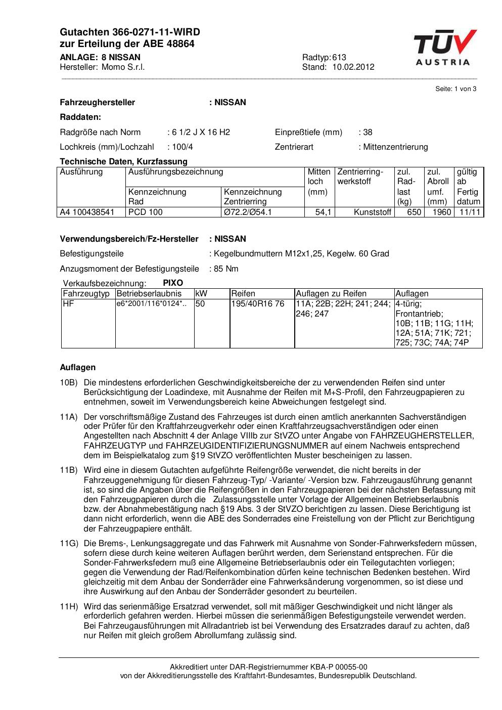 • Stimmt die KBA-Nummer auf der Felge mit diesem Dokument überein?