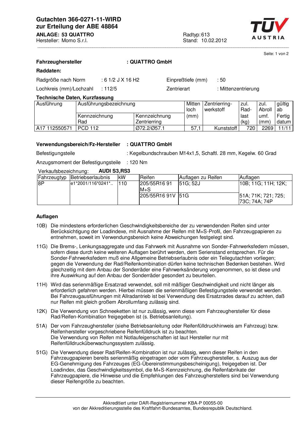 • Stimmt die KBA-Nummer auf der Felge mit diesem Dokument überein?