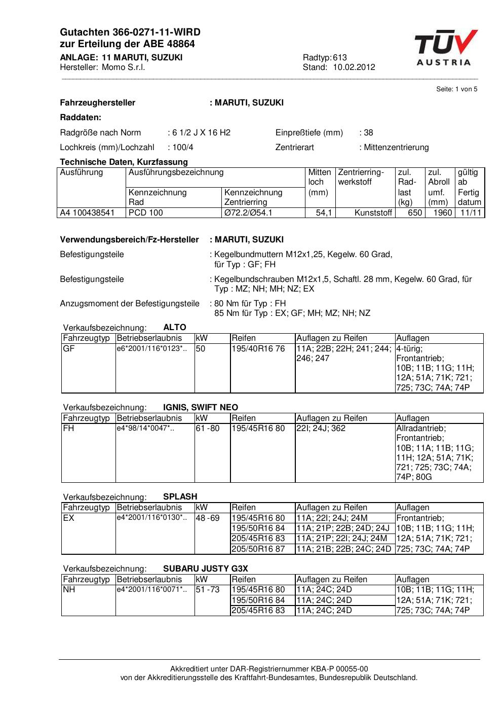 Fahrzeughersteller: MARUTI, SUBARU, SUZUKI