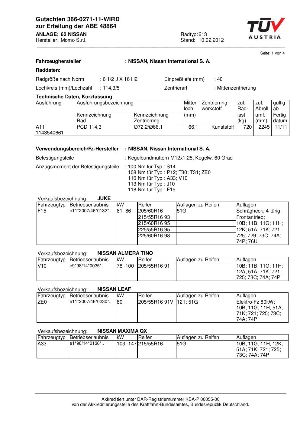 Dieses abe gehört zur Felge Momo 613 in 2Jx16 ET0 mit KBA 48864. Die Seite ist dafür gedacht, dass du schnell prüfen kannst, ob KBA, Design und Größe zu deiner Felge passen und danach direkt das richtige PDF lädst.