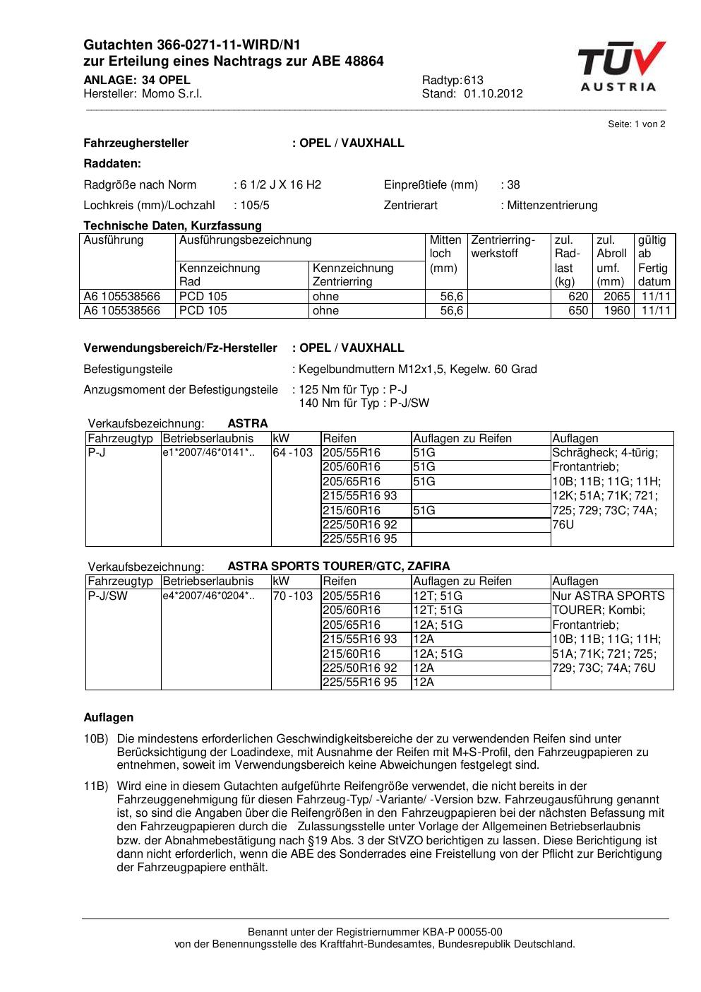 Dieses abe gehört zur Felge Momo 613 in 2Jx16 ET0 mit KBA 48864. Die Seite ist dafür gedacht, dass du schnell prüfen kannst, ob KBA, Design und Größe zu deiner Felge passen und danach direkt das richtige PDF lädst.