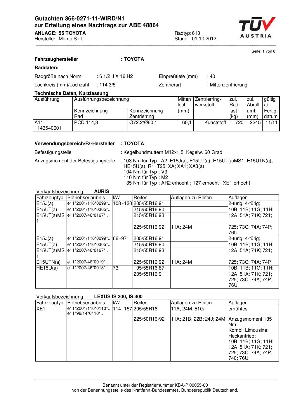 • Stimmt die KBA-Nummer auf der Felge mit diesem Dokument überein?