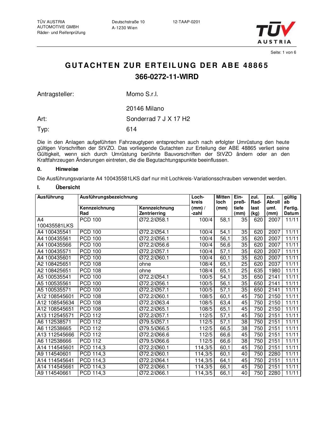 - Stimmt die KBA-Nummer auf der Felge mit diesem Dokument überein?