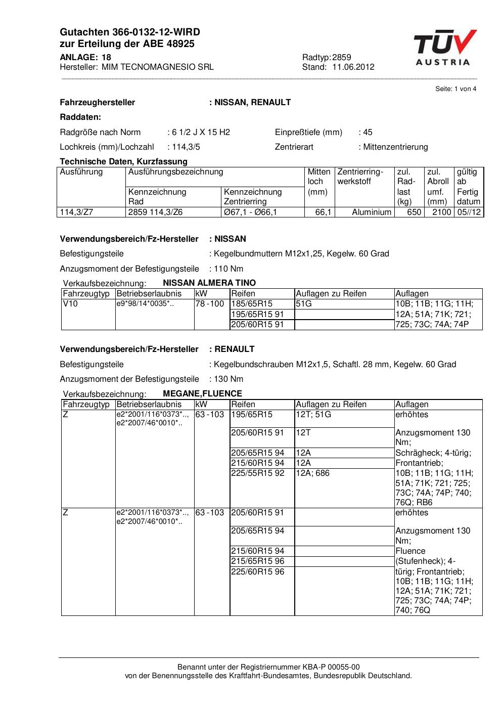 Felgengutachten / abe für Alufelgen ATS 2859 (2Jx15 ET 0, Mittenloch 0 mm) mit KBA 48925 (Zertifikatsnummer 48925). Hier kostenlos als PDF herunterladen. Der Download-Link ist 24 Stunden gültig und kann bis zu zwei Mal verwendet werden.
