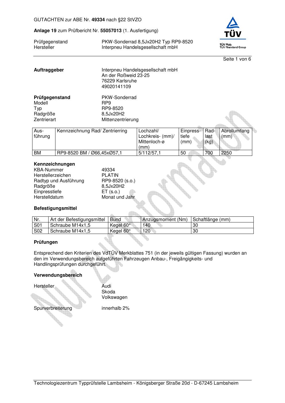 Dieses abe gehört zur Felge Platin RP9-8520 in 8.5Jx2 ET0 mit KBA 49334. Die Seite ist dafür gedacht, dass du schnell prüfen kannst, ob KBA, Design und Größe zu deiner Felge passen und danach direkt das richtige PDF lädst.
