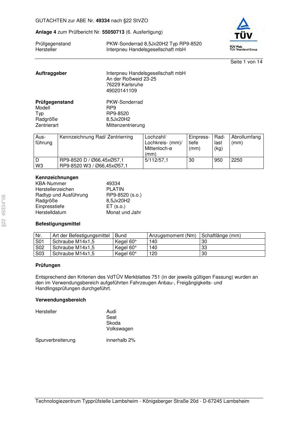• Stimmt die KBA-Nummer auf der Felge mit diesem Dokument überein?