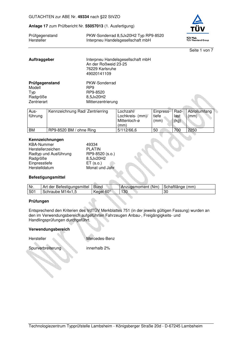 • Stimmt die KBA-Nummer auf der Felge mit diesem Dokument überein?