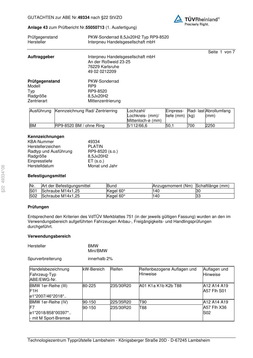 • Stimmt die KBA-Nummer auf der Felge mit diesem Dokument überein?