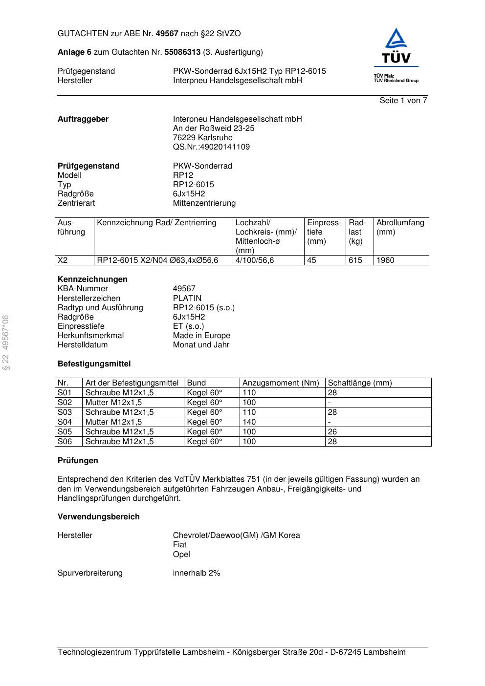 Dieses abe gehört zur Felge Platin RP12-6015 in 6Jx15 ET0 mit KBA 49567. Die Seite ist dafür gedacht, dass du schnell prüfen kannst, ob KBA, Design und Größe zu deiner Felge passen und danach direkt das richtige PDF lädst.