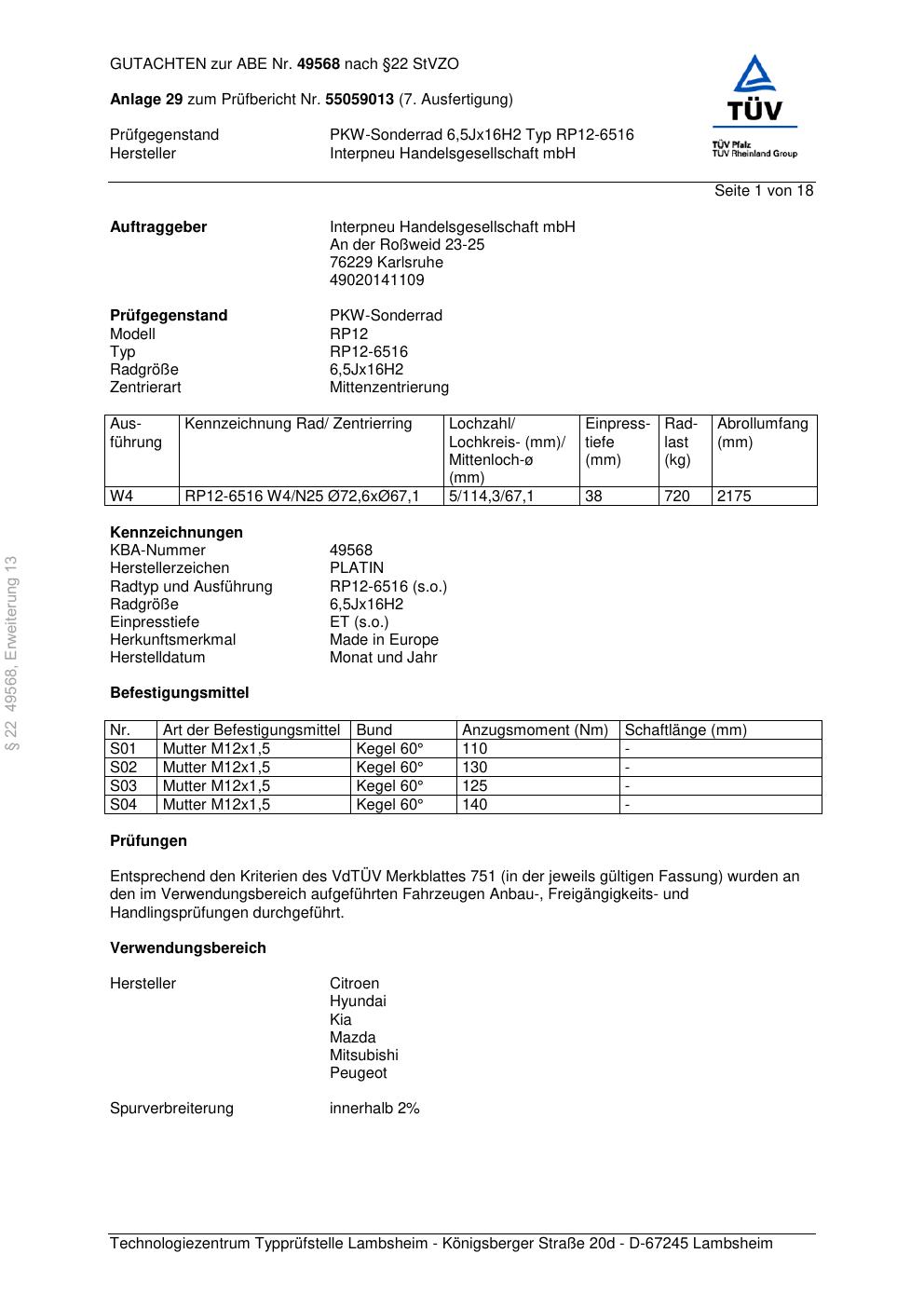 • Stimmt die KBA-Nummer auf der Felge mit diesem Dokument überein?