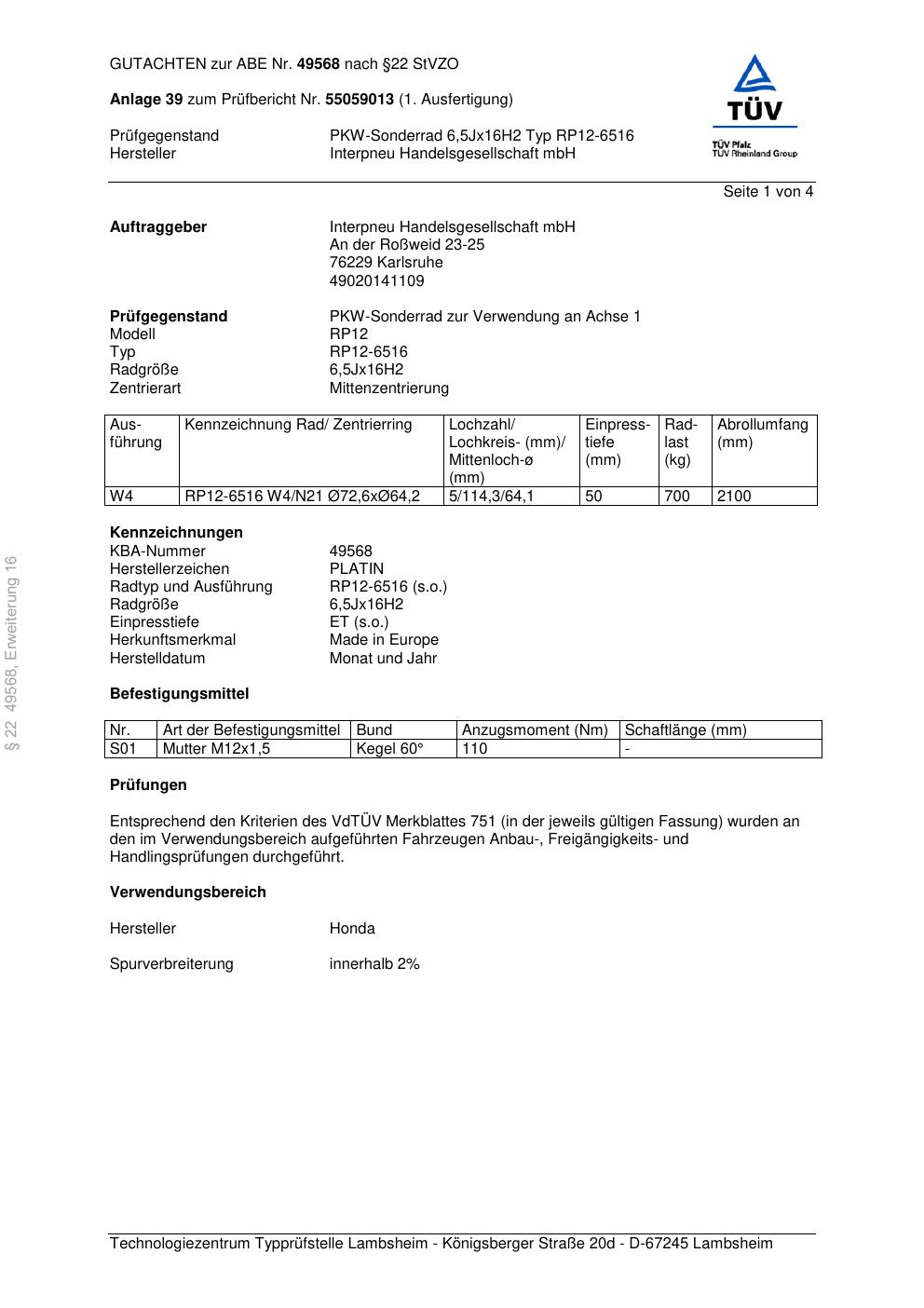 • Stimmt die KBA-Nummer auf der Felge mit diesem Dokument überein?